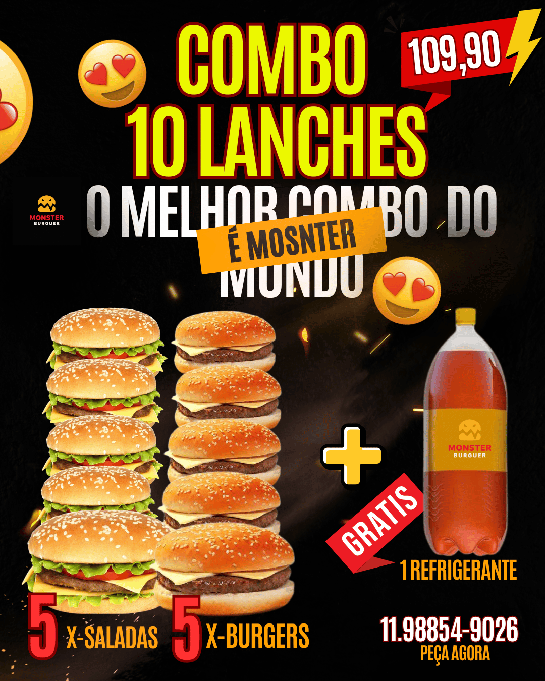 10 LANCHES, 1 GUARANÁ 1 Refrigerante grátis