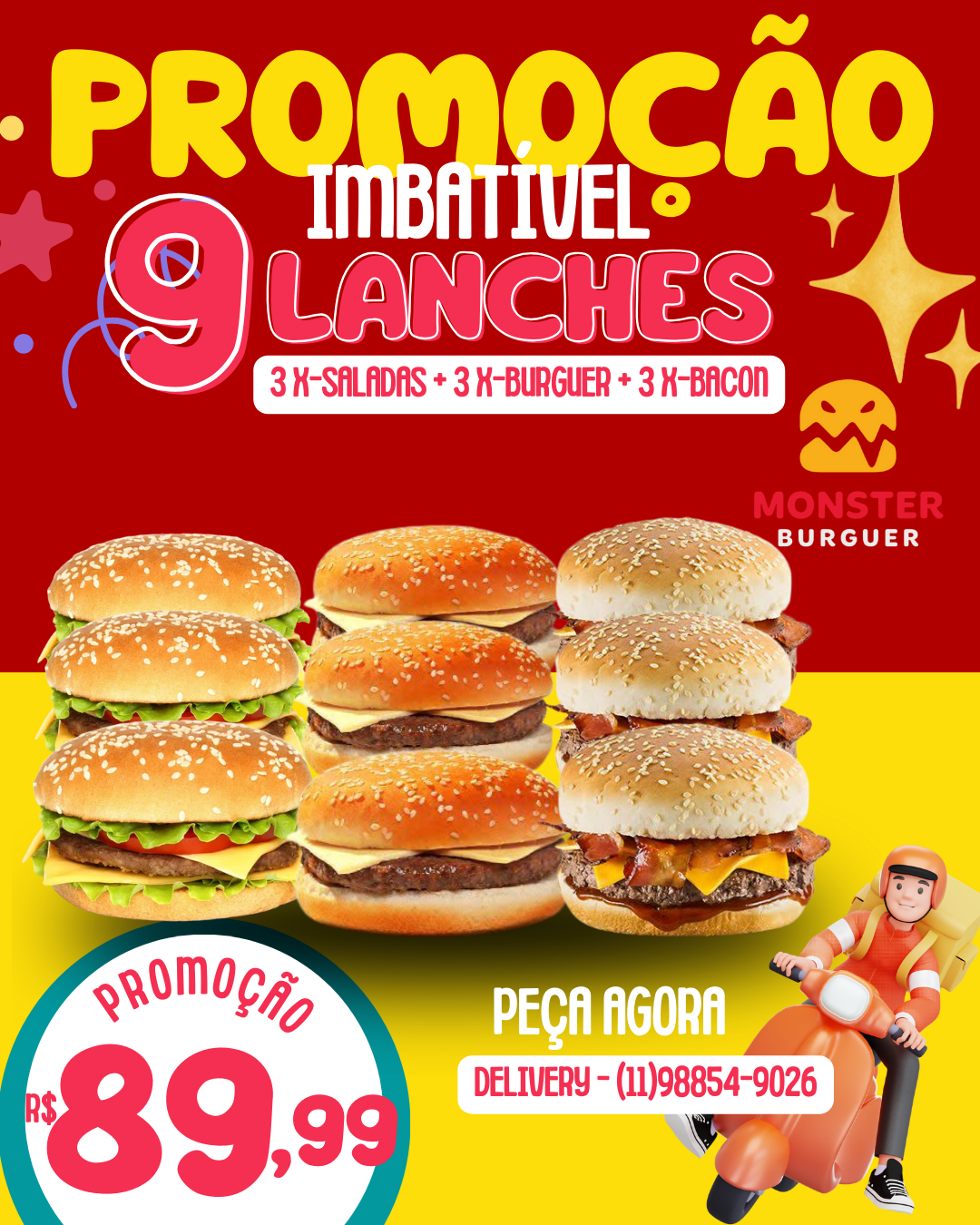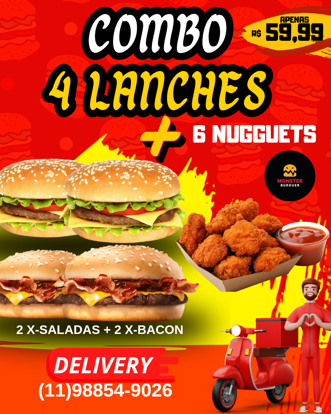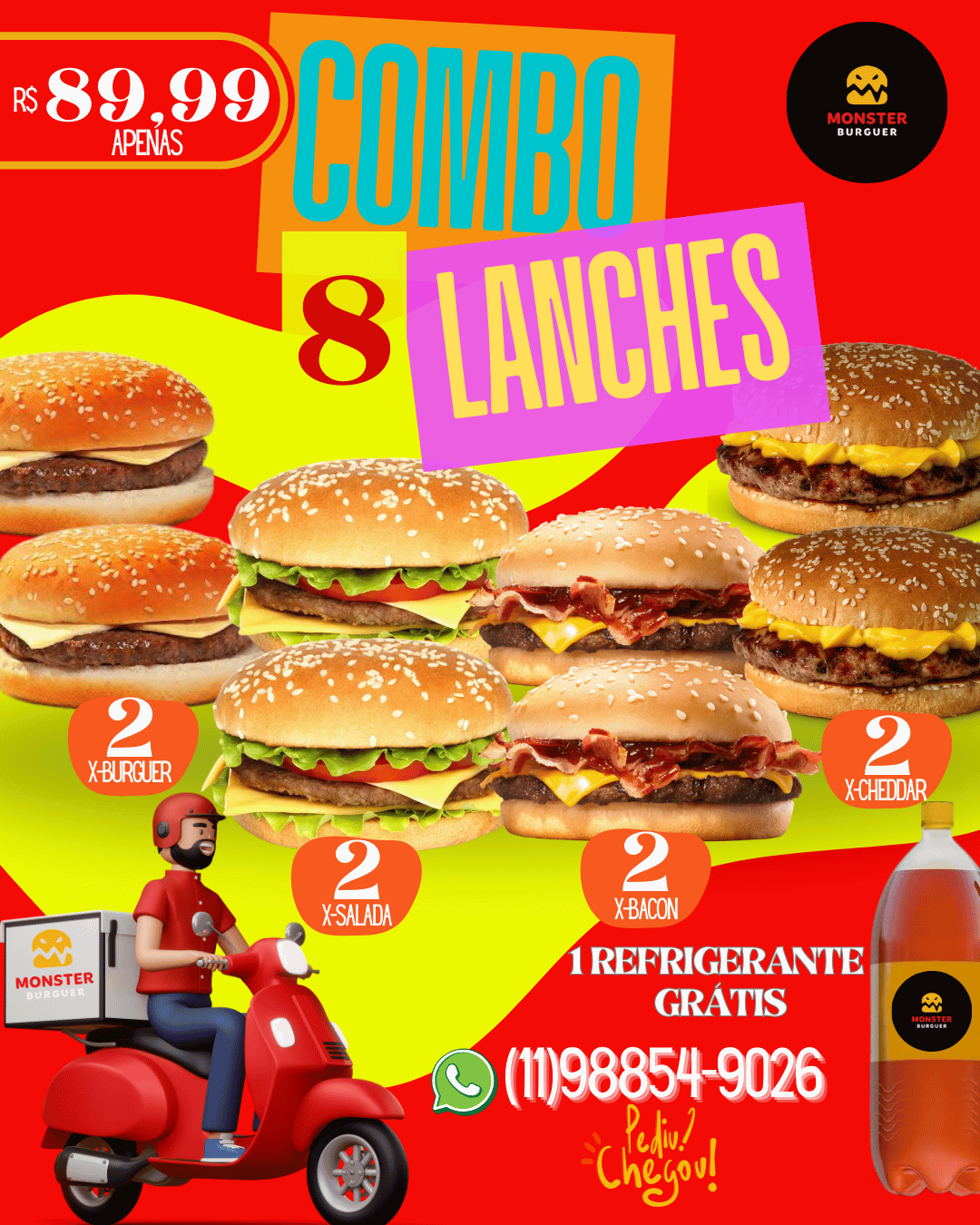 2X-Saladas, 2X-Bacon, 2X-Burguer, Grátis 1 Refrigerante