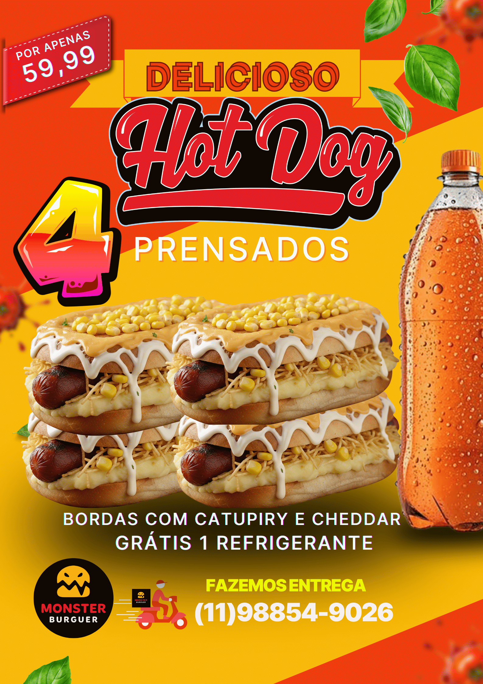 COMBO 4 DOGS + 1 Refrigerante grátis