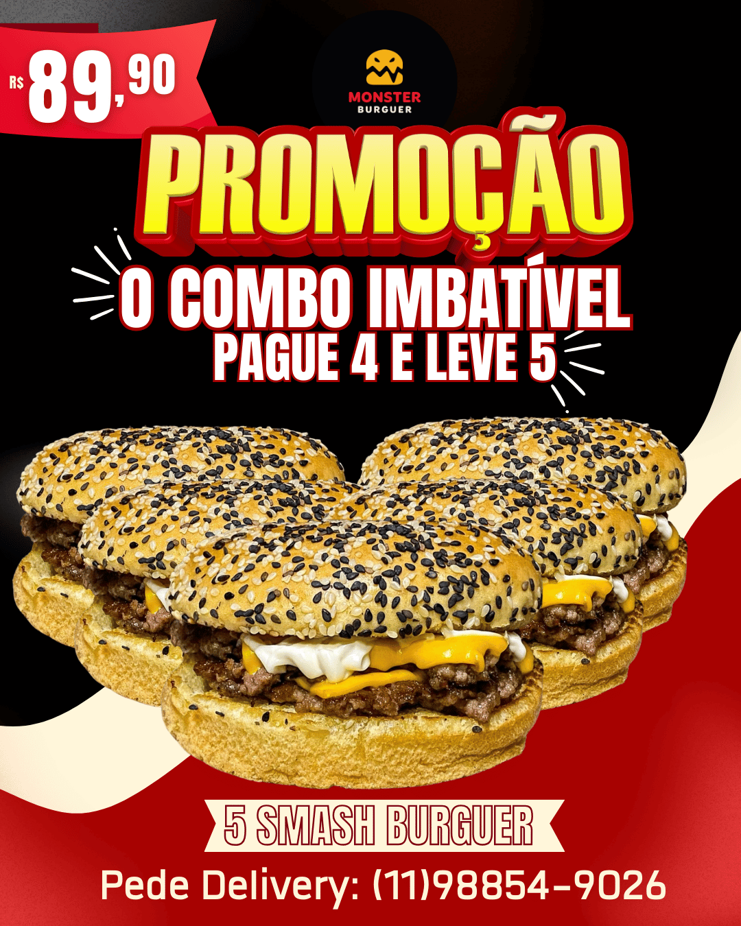 5 x-saladas, 5 x-burguers + 1 guarana 1Refrigerante grátis