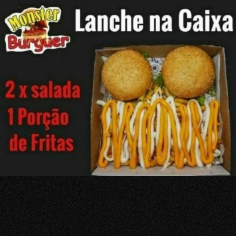 2 X-Burguer, Frango Frito, onions,batata frita com cheddar e bacon, e o melhor, aquela piscina de cheddar na caixa.