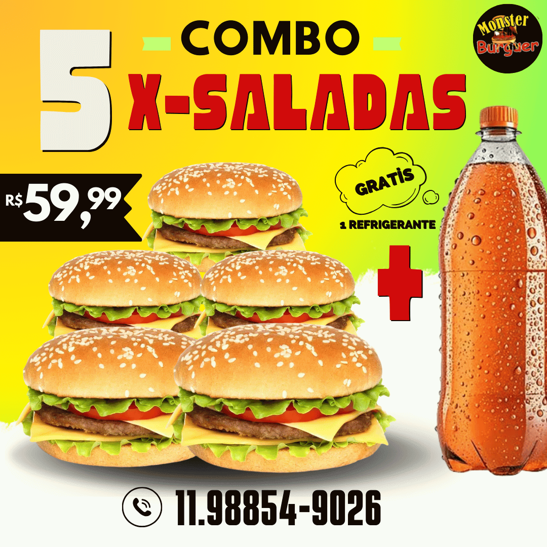 COMBO 5 X-SALADAS + 1 REFRGERANTE GRÁTIS